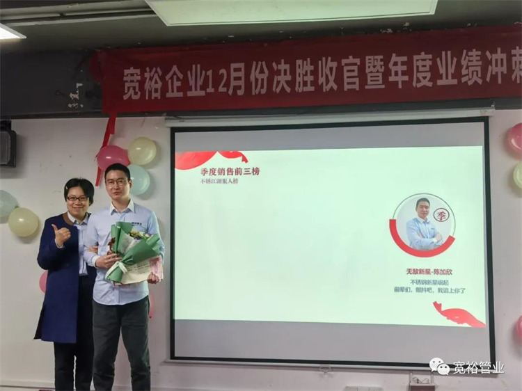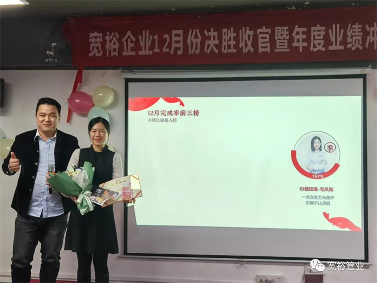 1月6日晚上,寬裕企業(yè)“快樂(lè)掙口糧,幸福過(guò)肥年”之12月收官之戰(zhàn)總結(jié)及頒獎(jiǎng)典禮在企業(yè)總部三樓會(huì)議室隆重舉行!經(jīng)過(guò)了一個(gè)月的奮戰(zhàn),經(jīng)過(guò)一次啟動(dòng)及二次啟動(dòng)的疊加推進(jìn),每天早開(kāi)會(huì)、晚總結(jié),一個(gè)一個(gè)看似微不足道的動(dòng)作,全都為了指向最終目標(biāo)的勝利實(shí)現(xiàn)!寬裕的全體戰(zhàn)士們最終以100%完成沖刺任務(wù)的彪炳戰(zhàn)績(jī)?yōu)?020年畫(huà)上了圓滿的句號(hào)!在此,小編僅代表寬裕企業(yè)感謝所有英勇奮戰(zhàn)的戰(zhàn)士們!感謝臺(tái)前幕后所有的伙伴們共同推動(dòng)了本次收官之戰(zhàn)的勝利!1月6日,我們勝利會(huì)師啦!